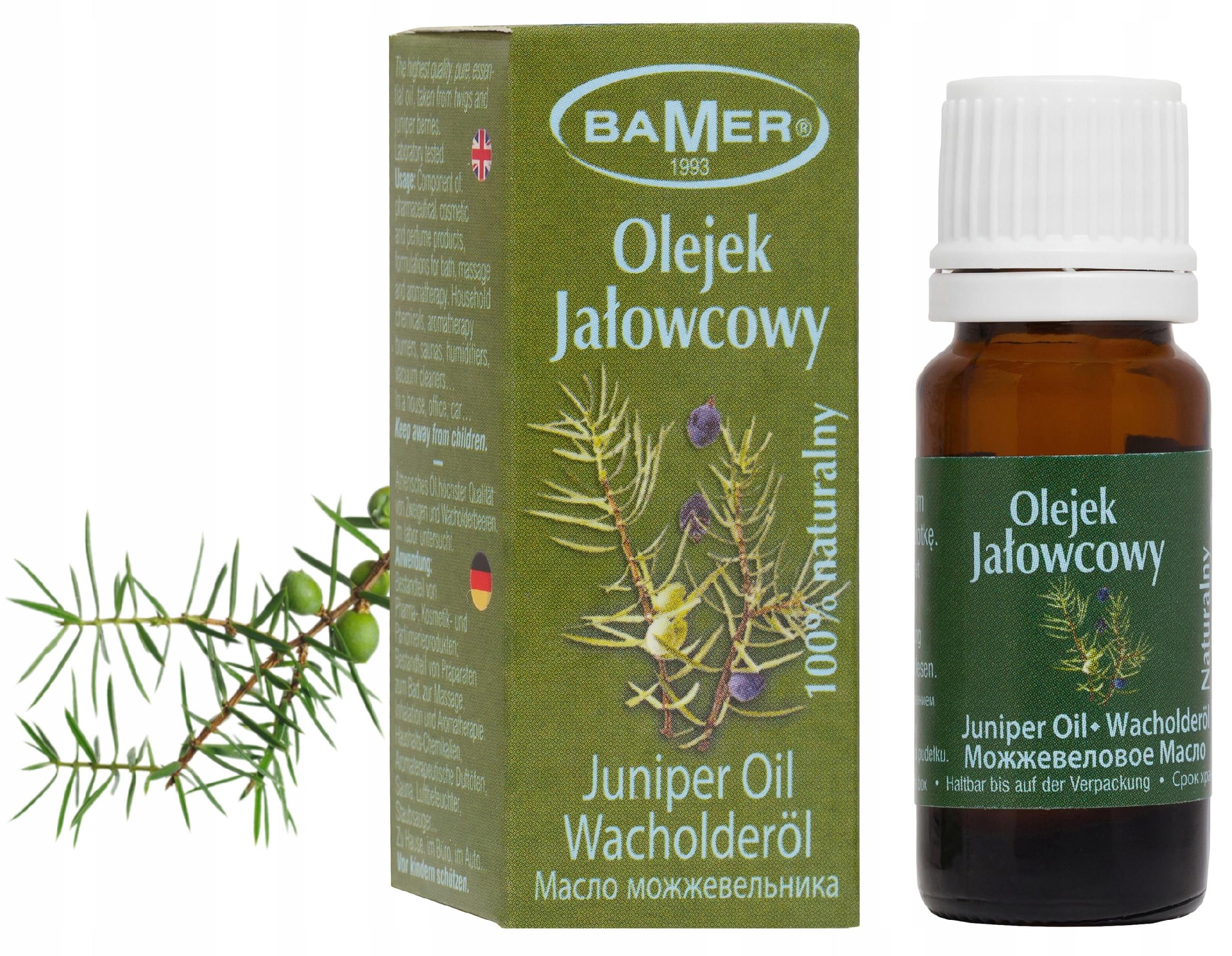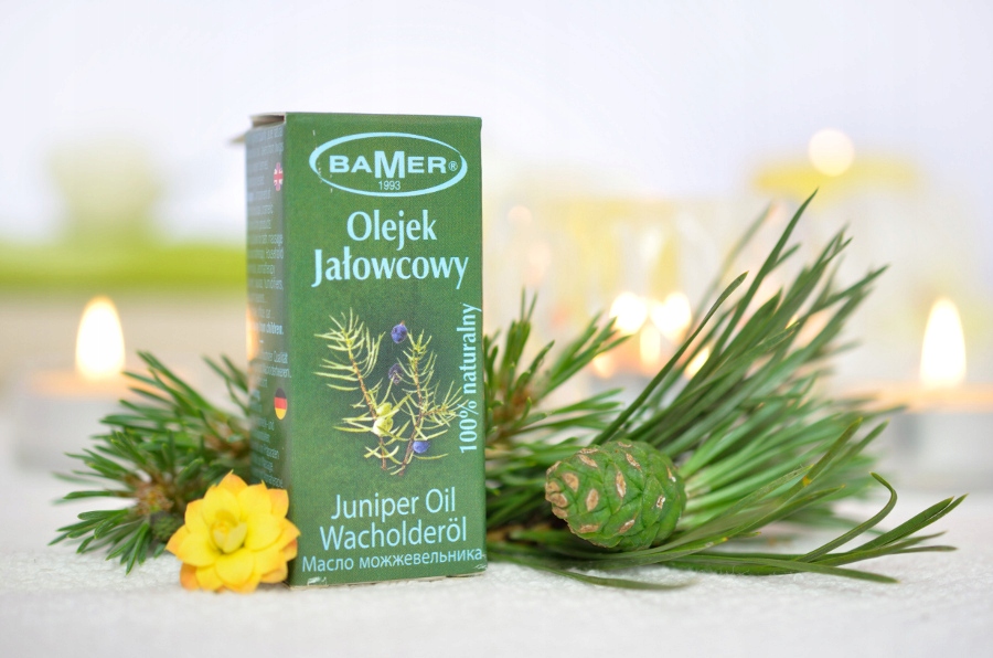 Właściwości olejku jałowcowego Olejek jałowcowy działa antyseptyczne i przeciwzapalne. Ze względu na swe właściwości ściągające stosowany jest z powodzeniem w pielęgnacji cery tłustej i trądzikowej. Działa przeciwreumatycznie, antycellulitowo, przeciwbólowo i rozgrzewająco dlatego wykorzystywany jest jako dodatek do olejku do masażu. Aromatyzacja powietrza olejkiem jałowcowym (np. za pomocą kominka do aromaterapii) dezynfekuje powietrze, wzmacnia i dodaje energii w stanach wyczerpania fizycznego oraz psychicznego. Stosowany miejscowo w formie rozcieńczonej olejkiem bazowym lub glinką kosmetyczną łagodzi stany zapalne skóry oraz trądzik. Olejek jałowcowy doskonale wspomaga ukrwienie, dzięki czemu jest stosowany w kuracjach przeciw wypadaniu włosów np. jako dodatek do szamponu, glinki kosmetycznej stosowanej jako maska na włosy lub olejku do olejowania włosów. Zastosowanie olejku jałowcowego