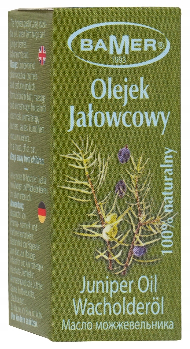 Wysokiej jakości, naturalny olejek eteryczny, pozyskiwany z gałązek krzewów jałowca (Juniperus communis).