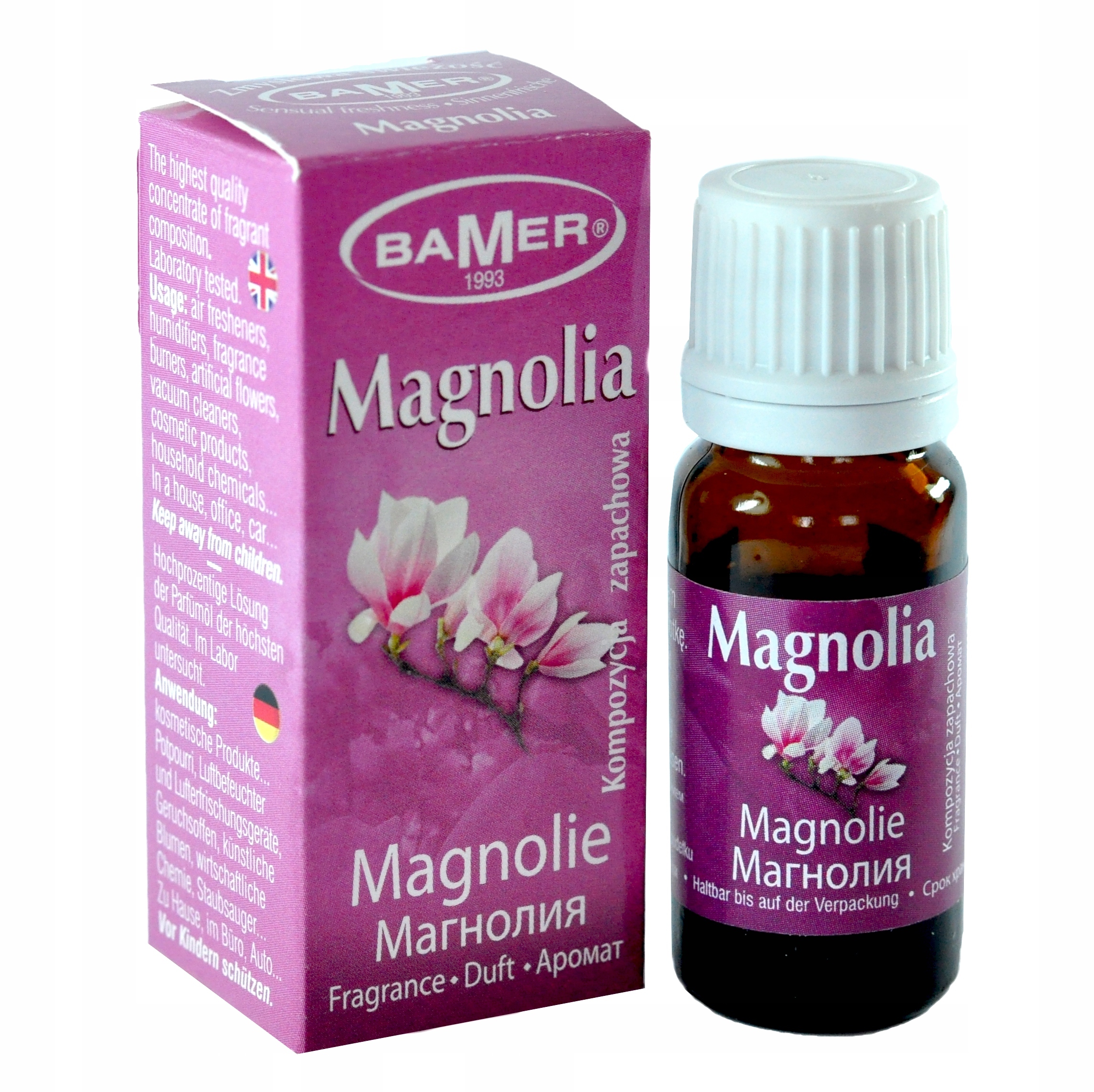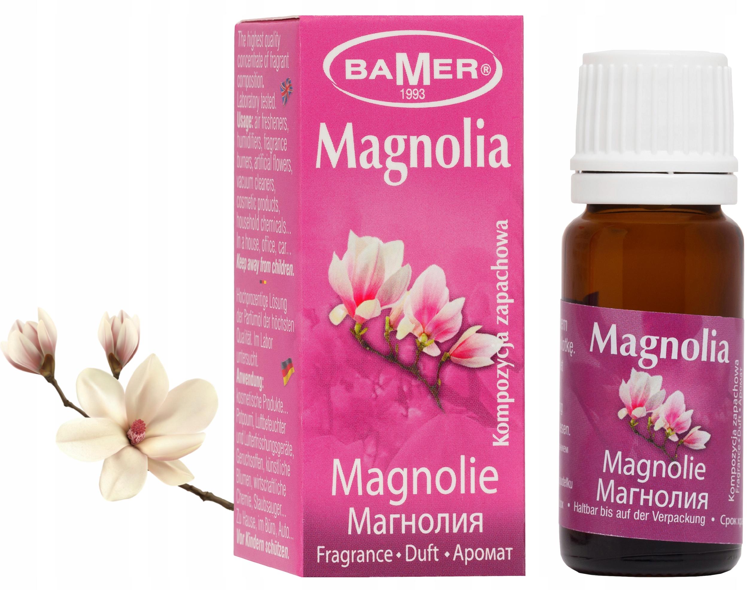 Olejek zapachowy: Magnolia. Olejki zapachowe można stosować w kominkach zapachowych, do masażu lub kąpieli. Pojemność 7ml, Producent: Bamer.