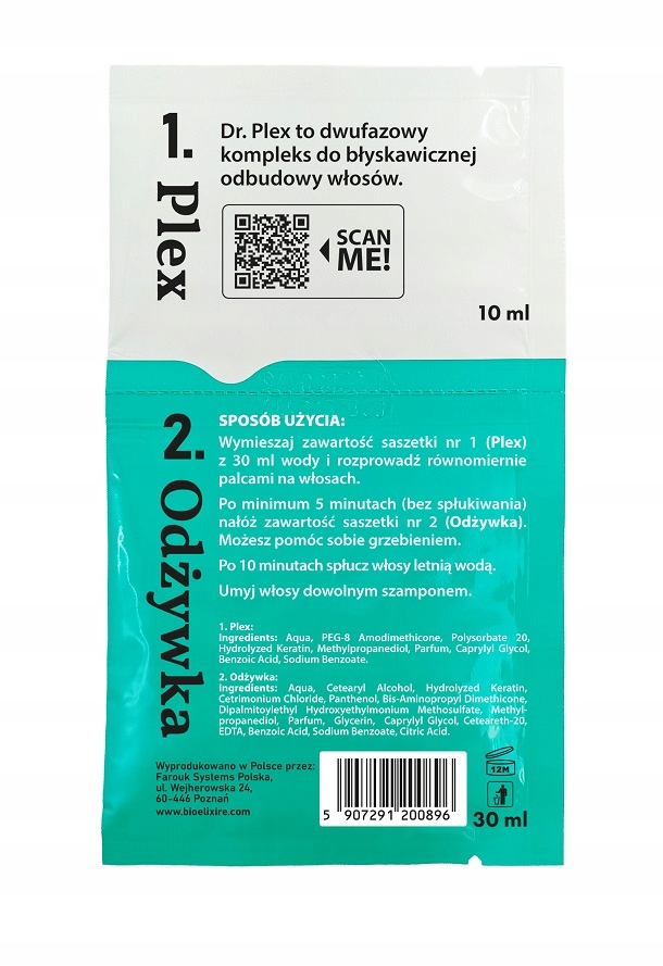 Bioelixire Dr. Plex natychmiastowa regeneracja włosów 10ml + 30ml – Saszetka