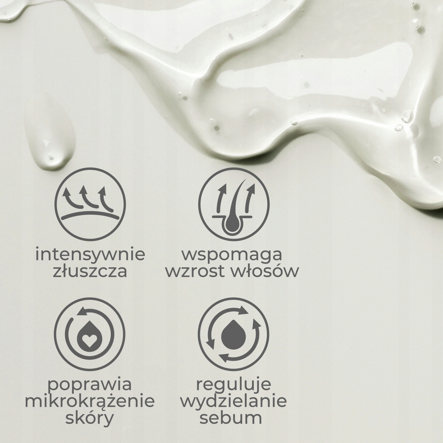 ✨ Dzięki połączeniu 5 kwasów AHA oraz peptID-5 booster, peeling intensywnie złuszcza martwy naskórek, oczyszcza skórę głowy i wspiera wzrost nowych włosów.