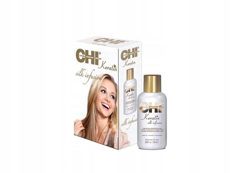 CHI Keratin Silk Infusion to kuracja do pielęgnacji włosów zniszczonych i osłabionych. Jej receptura oparta jest na: keratynie, oleju arganowym, oleju jojoba i jedwabiu. Substancje te regenerują zniszczone włókna włosów i jednocześnie uodparniają je na kolejne uszkodzenia. Co więcej, przywracają kosmykom optymalny poziom nawilżenia, dzięki czemu przestają się puszyć i chętnie współpracują.