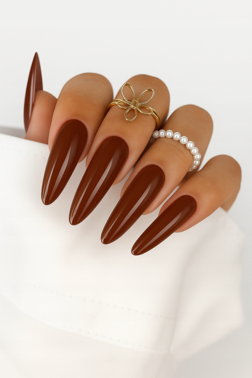 Czekoladowo-śliwkowy brąz doskonale wpisuje się w jesienne stylizacje, podkreślając ich głębię i wyrafinowany charakter.
