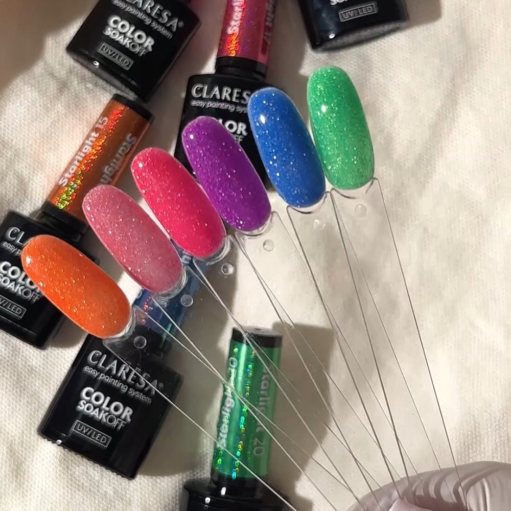 Letnia Kolekcja Starlight to intensywnych, letnich kolorów z efektem flash, które zmieniają się w świetle i hipnotyzują mieniącymi się drobinkami. Każdy odcień przyciąga spojrzenia wyjątkowym połyskiem – od soczystych, energetycznych barw po głębokie, nasycone tony. To idealny wybór na lato pełne blasku, odważnych stylizacji i niezapomnianych chwil.