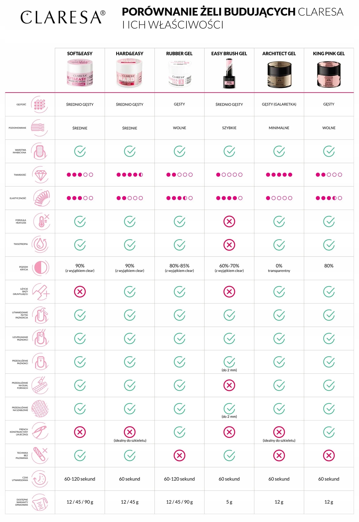 - Wymaga użycia bazy gruntującej – rekomendujemy Bonding Base for Gel Claresa.
