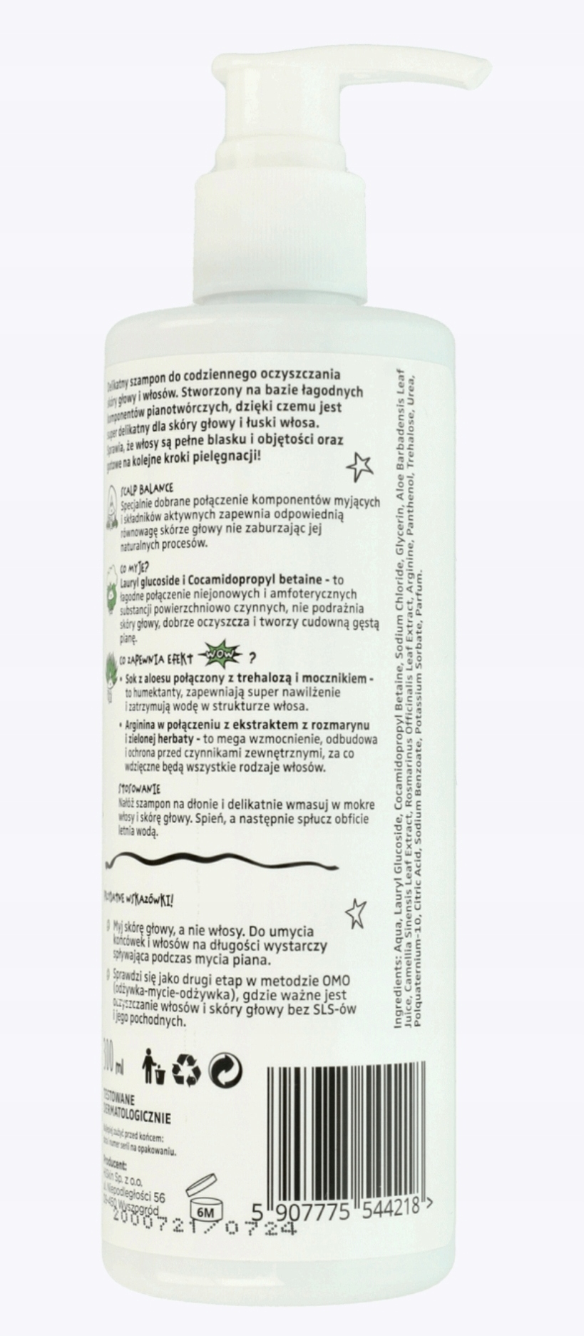 Delikatny szampon do codziennego oczyszczania skóry głowy i włosów. Stworzony na bazie łagodnych komponentów pianotwórczych, dzięki czemu jest super delikatny dla skóry głowy i łuski włosa. Sprawia, że włosy są pełne blasku i objętości oraz gotowe na kolejne kroki pielęgnacji!