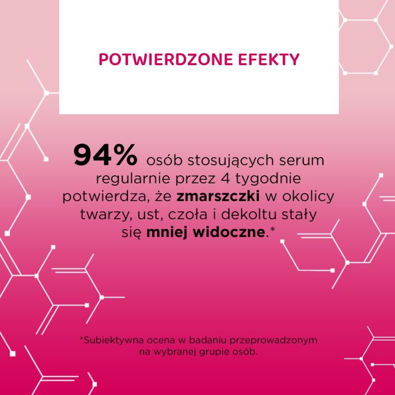 Skuteczna, odmładzająca formuła serum zadba o odżywienie i nawilżenie cery. Wyjątkowe składniki aktywne spłycą zmarszczki i linie oraz widocznie poprawią gęstość skóry.