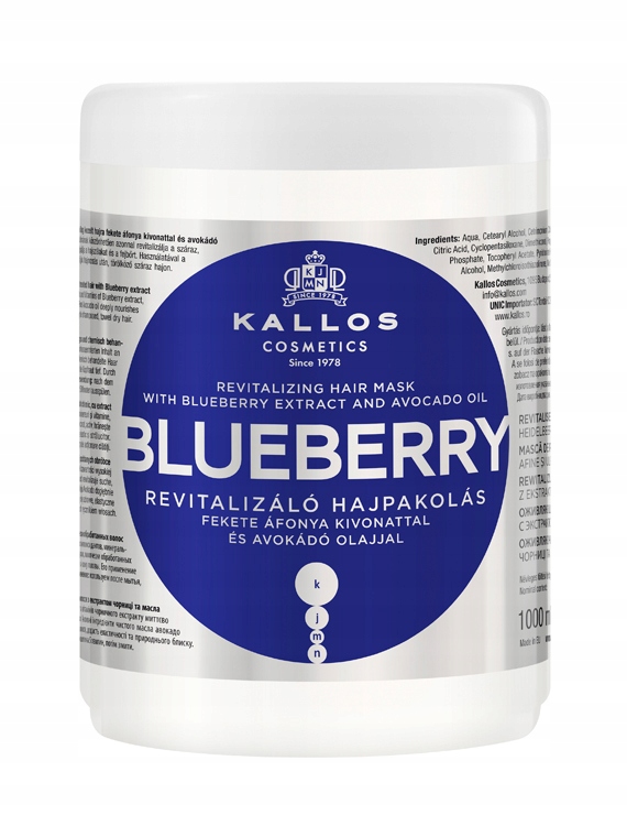 KALLOS MASKA DO WŁOSÓW REWITALIZUJĄCA Z EKSTRAKTEM Z JAGÓD BLUEBERRY 1000 ML