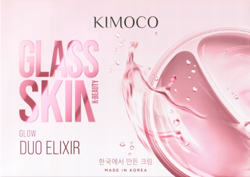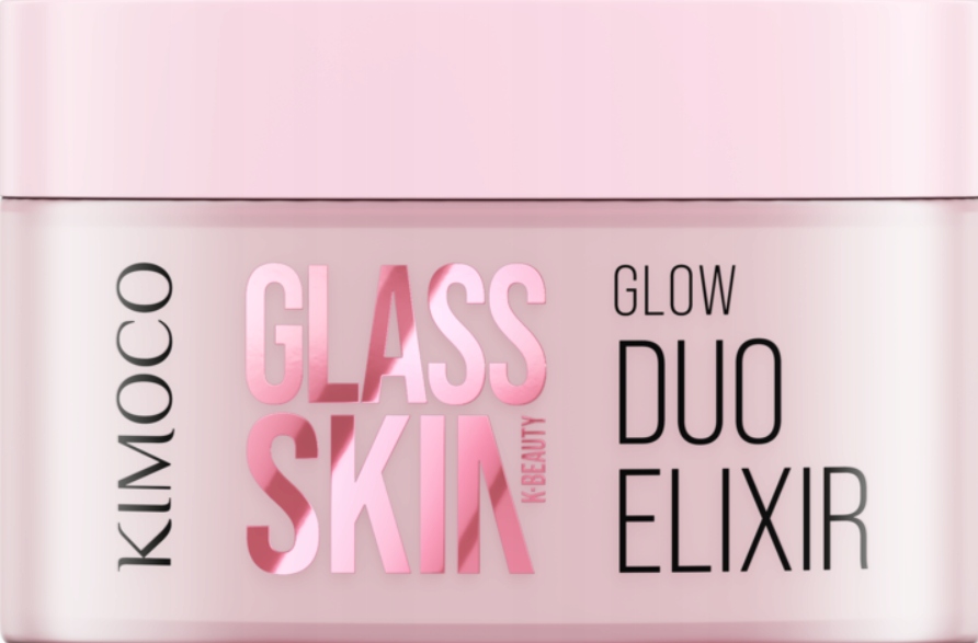 Rozświetlająco-nawilżający krem-serum do twarzy Kimoco Glass Skin Duo Elixir z niacynamidem i kwasem hialuronowym.