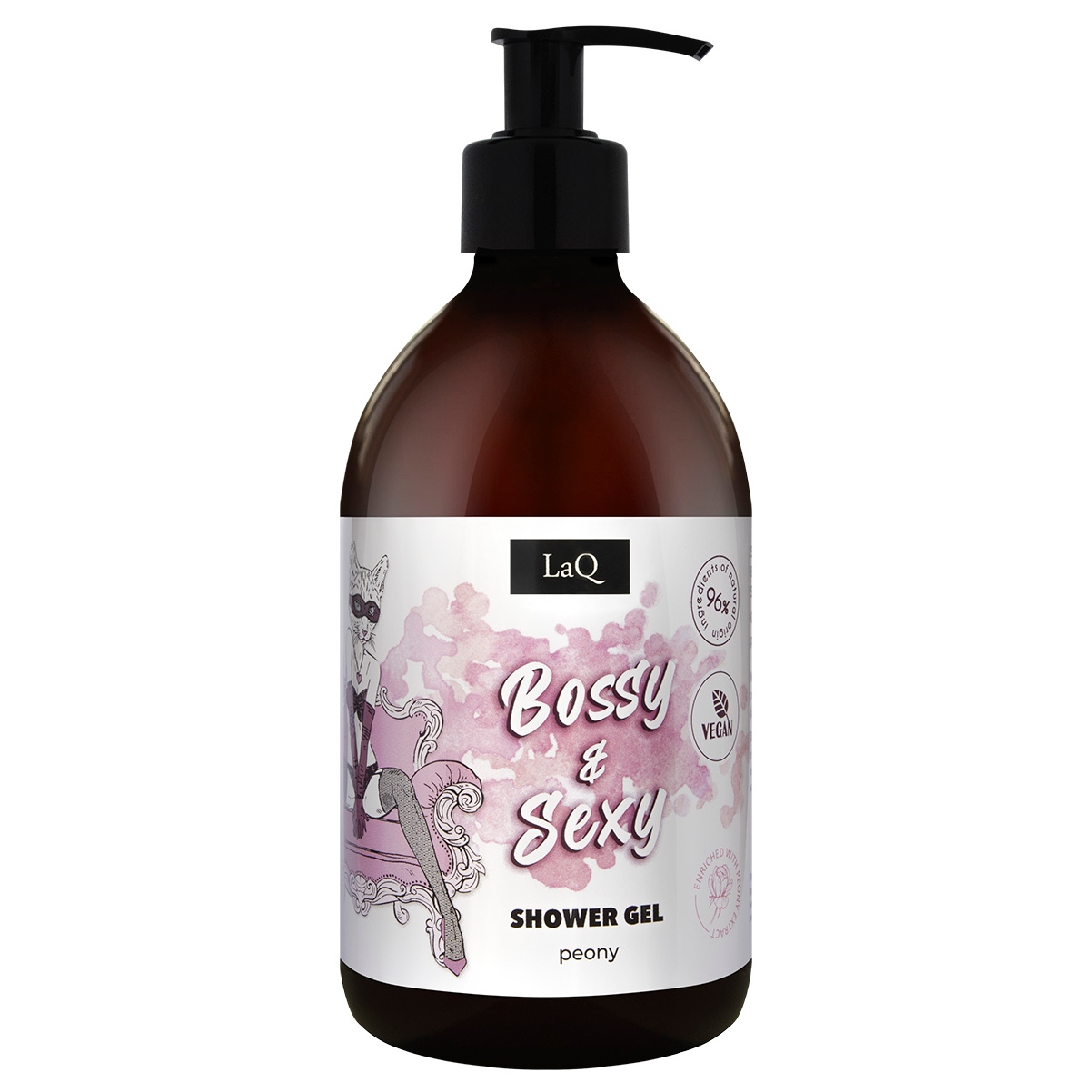 LaQ Kocica Piwonia Żel pod prysznic o zapachu eleganckich perfum dla kobiet, zawierający ekstrakt z piwonii 500 ml