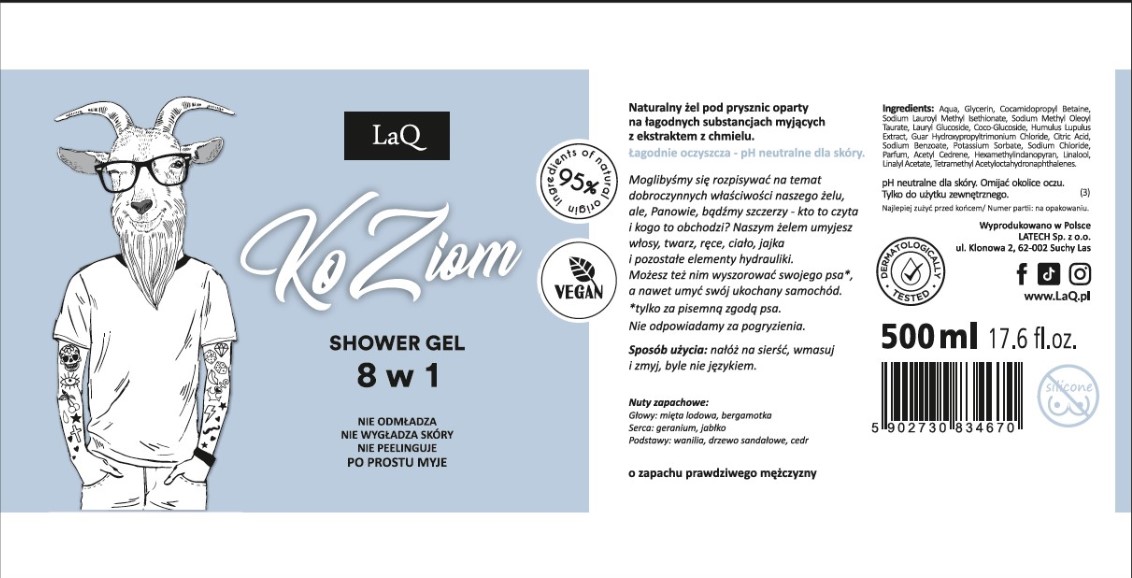 Żel pod prysznic KoZiom został specjalnie stworzony z myślą o mężczyznach. Jest naturalny, wegański i nieodparty – pachnie męskimi perfumami i zawiera ekstrakt z chmielu. Ale przede wszystkim jest po prostu doskonałym żelem do mycia.