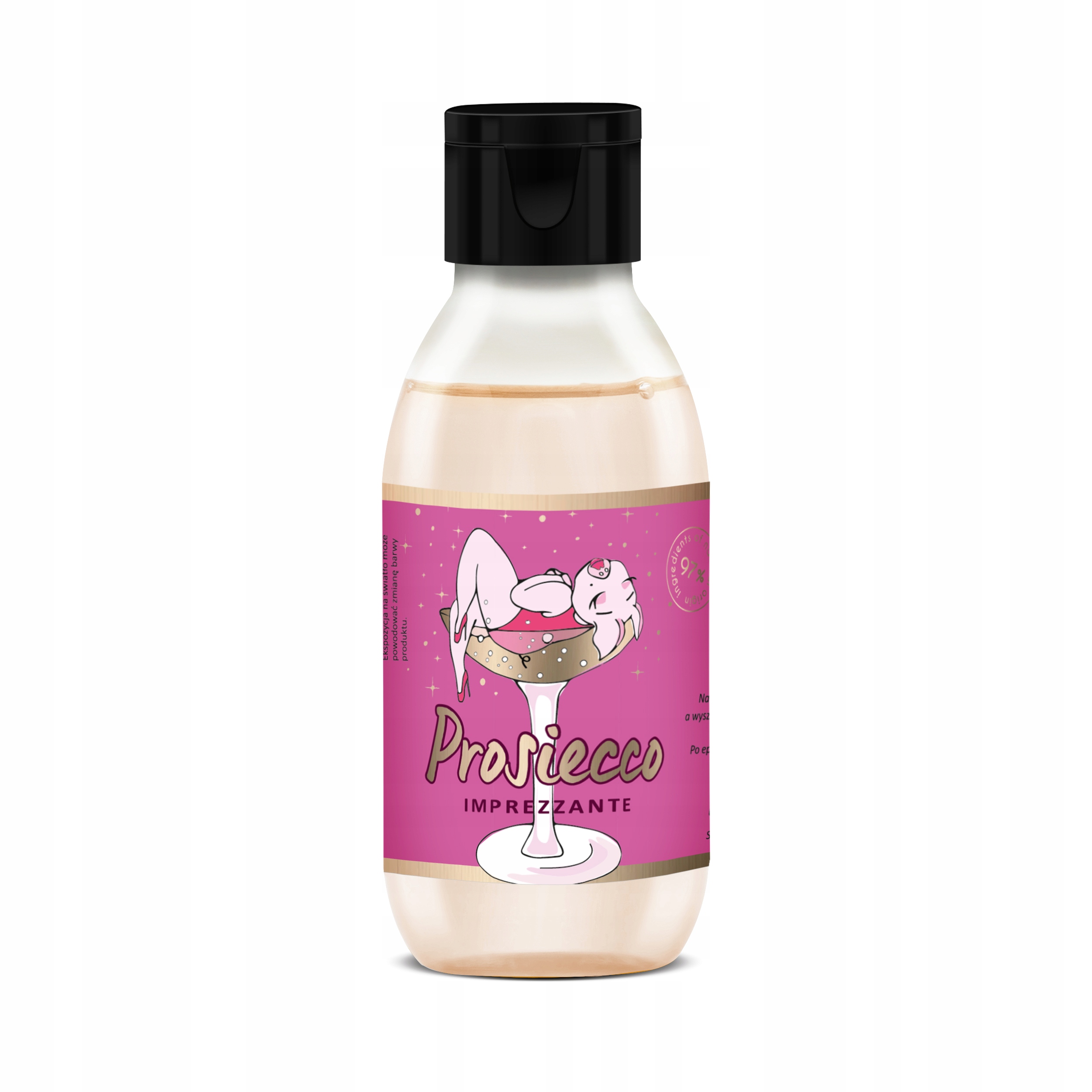 Oto ja – naturalny i wegański żel pod prysznic Shots! – taki fajny, w kolorze szampana. A do tego – być może wbrew wszystkiemu, co widzisz i czytasz na jego etykiecie – nie świńsko, ale świetnie pachnący.