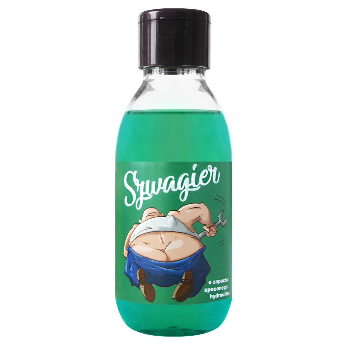 Żel pod prysznic – Szwagier Bartasa – zielony, męski… o zapachu spoconego hydraulika, zrobi z Ciebie najbardziej pożądanego specjalistę na dzielni. Robota wydaje się niewykonalna? Czcij Szwagra swego, bo możesz mieć gorszego. Uważnie wybieraj tego, kto będzie mył Twoją siostrę i przepychał Ci rurę. Zielone cieszy oko i duszę niczym spocony rów hydraulika, dlatego pamiętaj, że do roboty spodnie ściągasz, a do pracy pod zlewem – podciągasz. Dzięki zawartości składników o działaniu przeciwzapalnym, nawilżającym czy ujędrniającym – dobrze umyje i nie przesuszy naskórka.