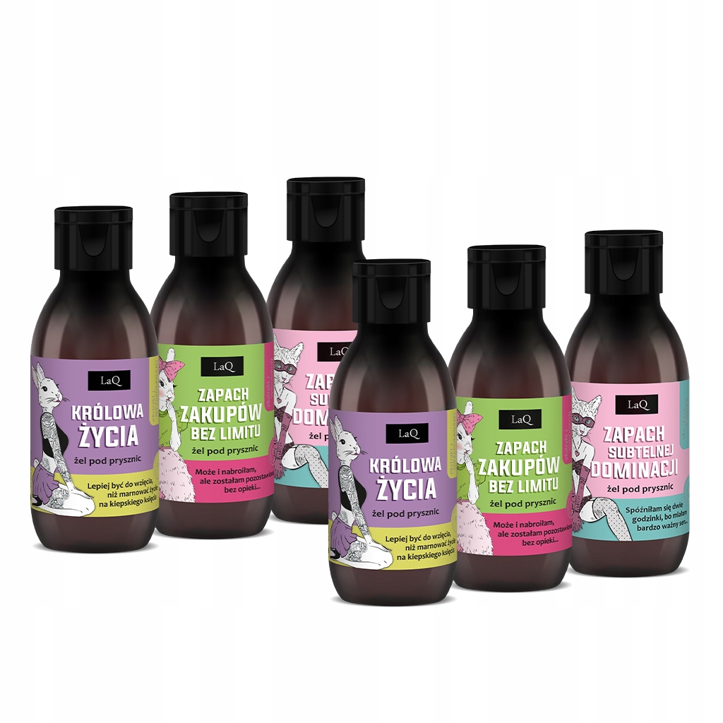 W Szczęściopaku znajdziesz żel NIEZAPOMINAJKA KRÓLOWA ŻYCIAktóra ma subtelny zapach ekskluzywnych perfum ze zmysłową nutą… Brawo, niezapominajki. Została ona stworzona dla kobiet przebojowych i kusząco powabnych, a także dla tych pozornie nieśmiałych, które lubią zaskakiwać i – gdy można – potrafią też dać czadu.  Natomiast linia PIWONIA ZAPACH SUBTELNEJ DOMINACJI ma zmysłowy zapach ekskluzywnych perfum z sensualnymi nutami piwonii. Powstała ona dla kobiet silnych i zdecydowanych. Tych, które znających swoją wartość i potrafiących wykorzystać swoje atuty. Z kolei seria KIWI I WINOGRONA – ZAPACH ZAKUPÓW BEZ LIMITU ma soczysty zapach świeżych owoców kiwi i winogron. Jest ona idealna dla kobiet aktywnych, żywiołowych i towarzyskich, które swoją pozytywną energią umilają nudne spotkania i rozkręcają kiepskie imprezy.
