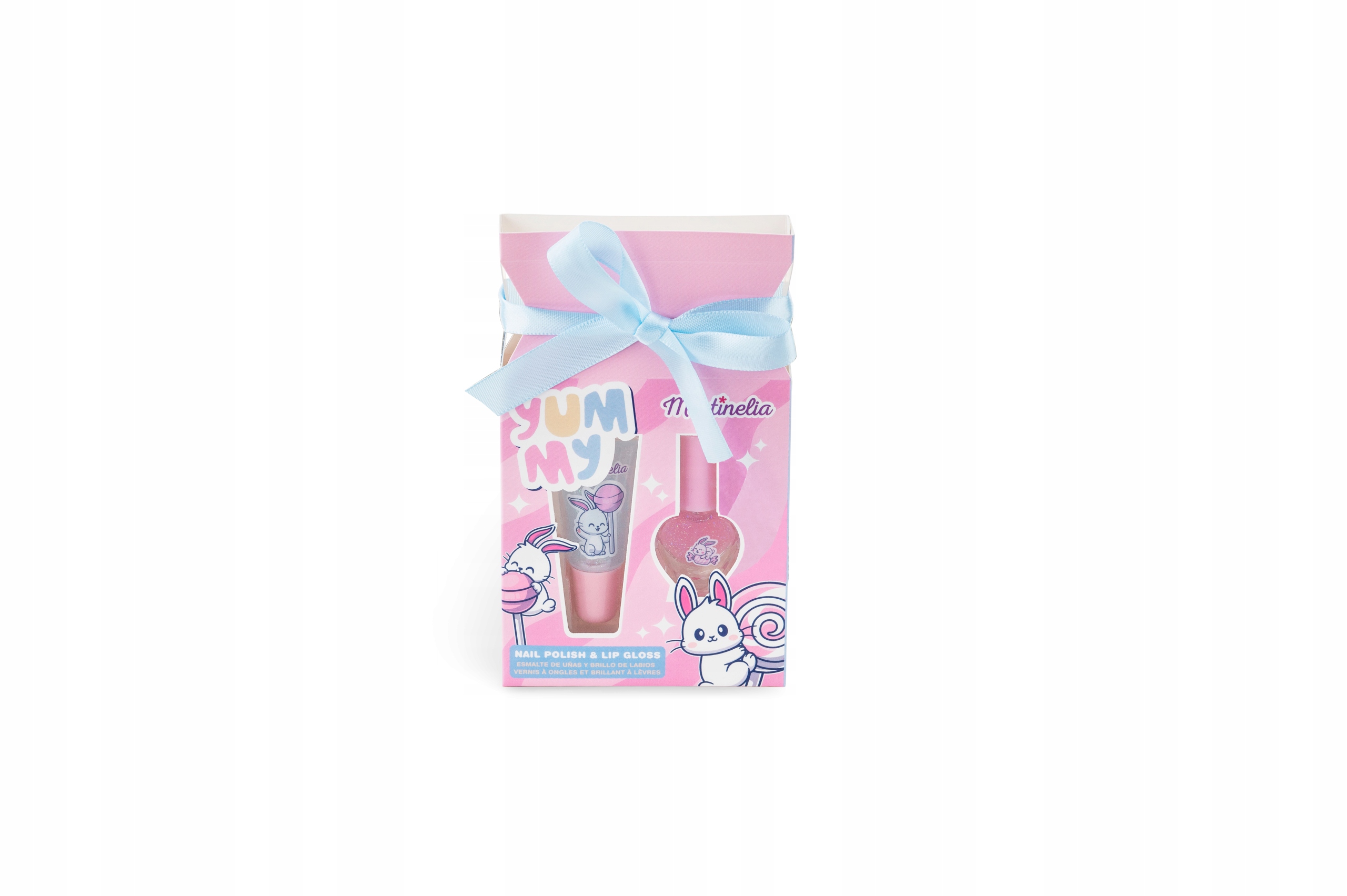 Zestaw zawiera błyszczyk do ust oraz nietoksyczny lakier do paznokci.