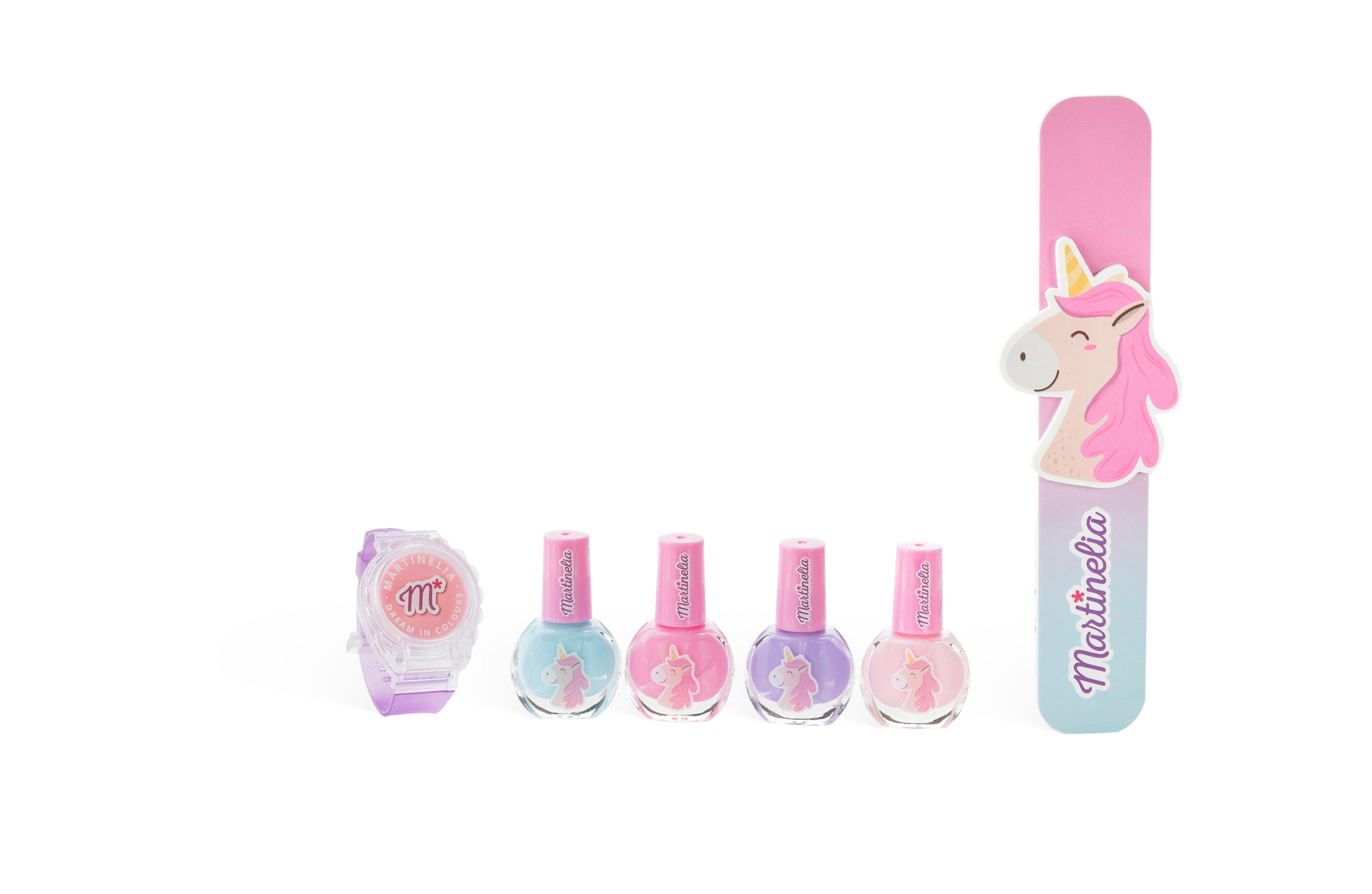 Zestaw do manicure Martinelia Mały Jednorożec z zegarkiem to idealna propozycja dla małych fanek jednorożców, które pragną dbać o swoje paznokcie i bawić się w stylizację.