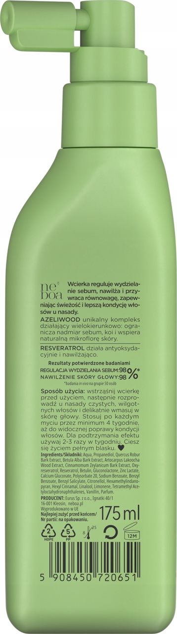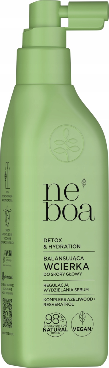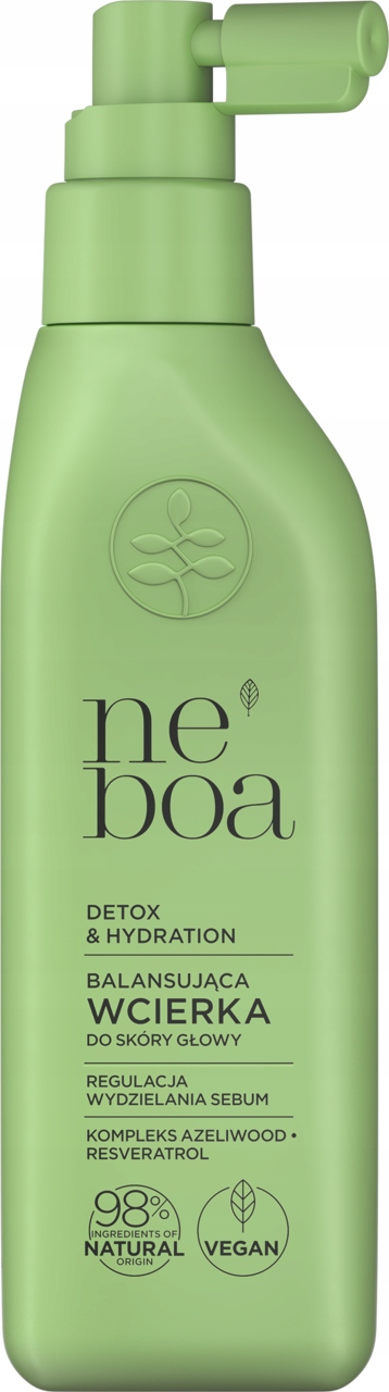 Balansująca wcierka do skóry głowy Neboa Detox & Hydration z resveratrolem oraz kompleksem Azeliwood. Nawilża, odświeża i reguluje wydzielanie sebum.