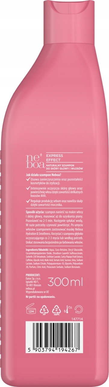 DODATKOWE INFORMACJE O NEBOA EXPRESS EFFECT SZAMPON DO WŁOSÓW I SKÓRY GŁOWY GŁĘBOKO OCZYSZCZAJĄCY 300 ML
