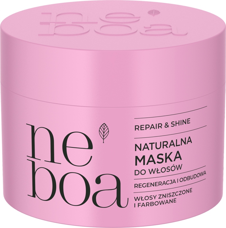 Naturalna maska do włosów Neboa Repair & Shine zawiera 98% składników pochodzenia naturalnego. Szybko się aplikuje i łatwo zmywa. Nie obciąża włosów.