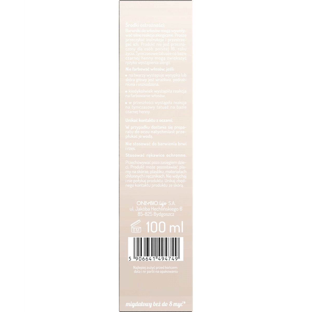 Toner OnlyBio o zapachu mleka migdałowego nie zawiera amoniaku ani wody utlenionej, a beżowy odcień utrzymuje się do 8 myć.