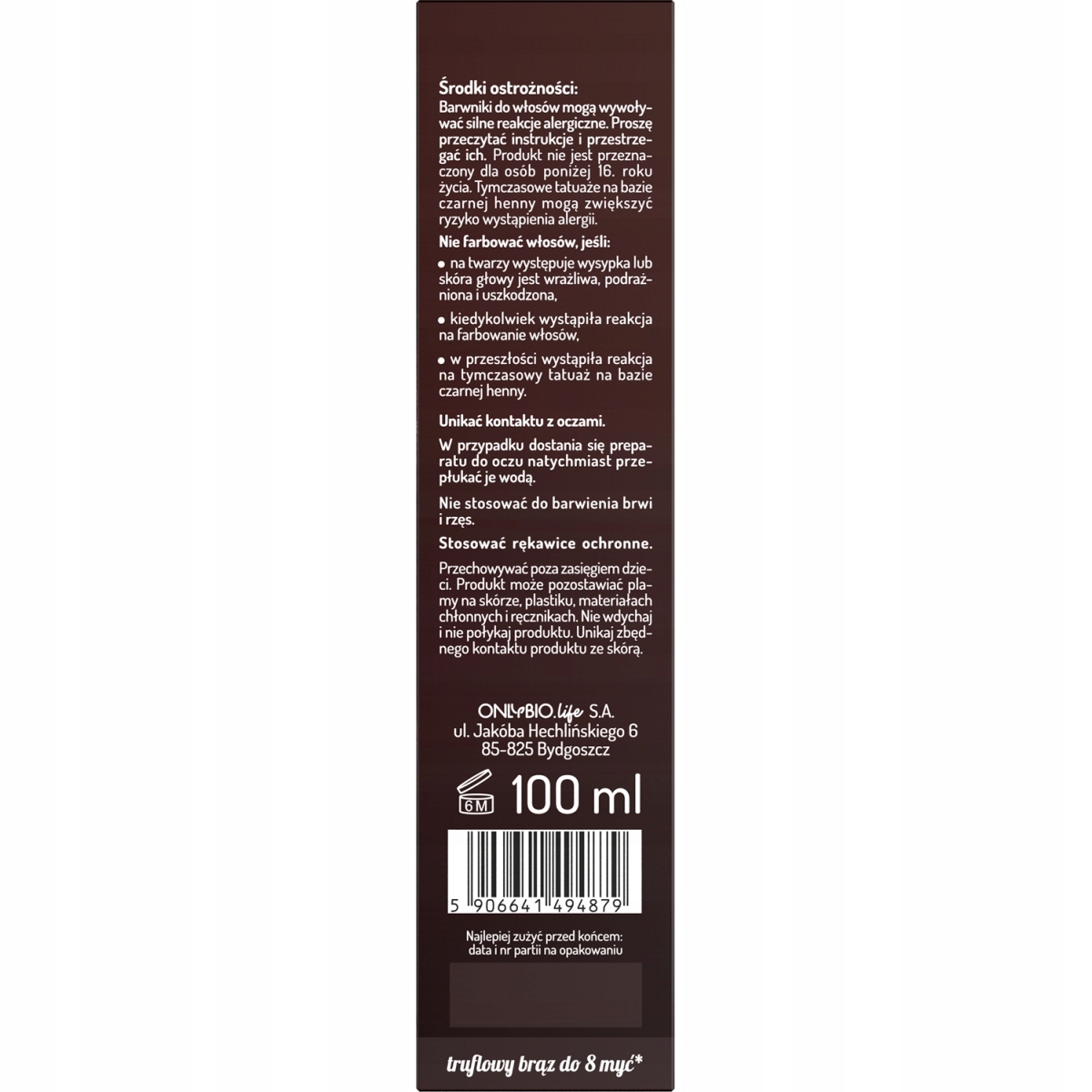 Toner OnlyBio o zapachu czekoladowej trufli nie zawiera amoniaku ani wody utlenionej, a intensywny, brązowy odcień utrzymuje się do 8 myć.