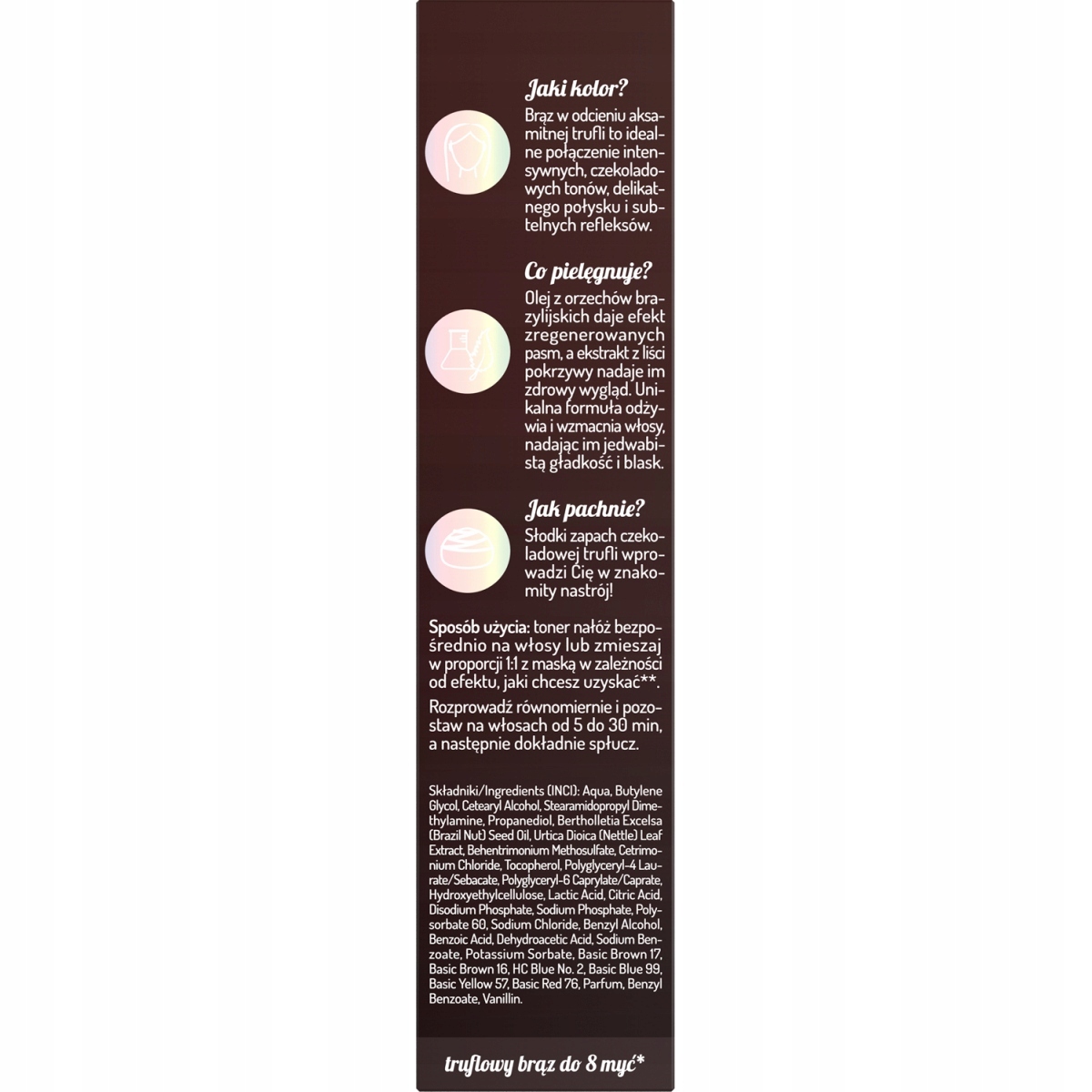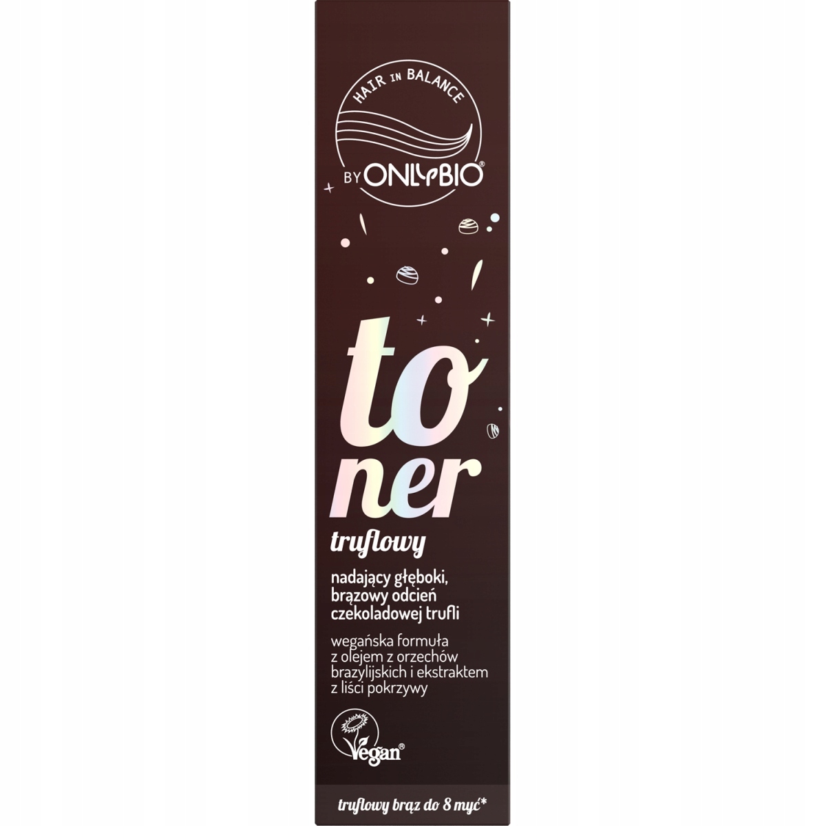 Toner do włosów Truflowy Hair In Balance by OnlyBio odświeżający kolor i nadający głęboki brązowy odcień czekoladowej trufli z subtelnymi refleksami.