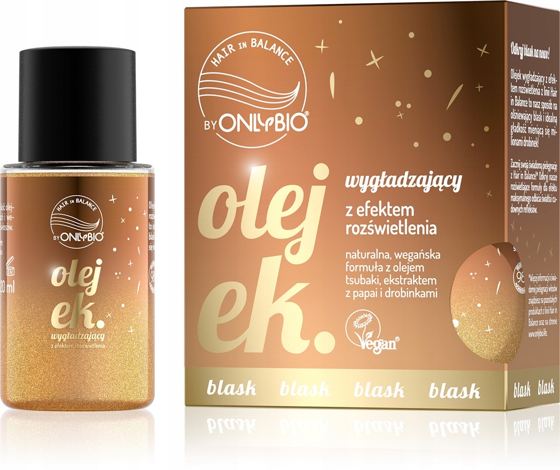 Olejek wygładzający włosy z efektem rozświetlenia od OnlyBio z linii Hair in Balance, który nadaje włosom olśniewającego blasku i idealnej gładkości.