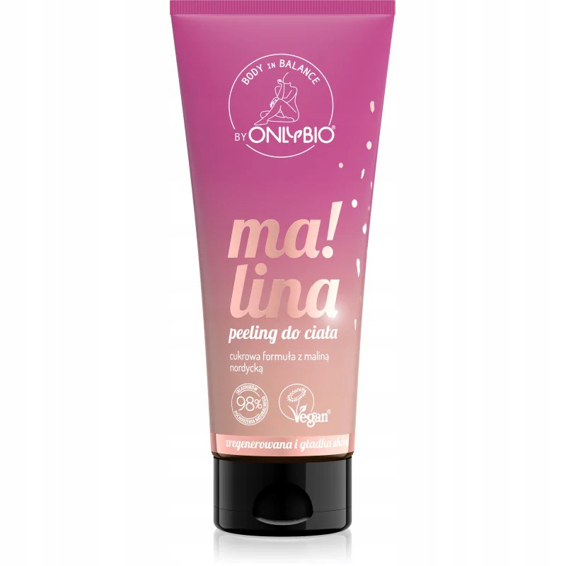 Malinowy peeling do ciała OnlyBio działa łagodnie, a zarazem skutecznie. To zasługa starannie dobranych, wegańskich składników, które w 98% są pochodzenia naturalnego. Dlatego to świetny wybór, jeśli szukasz nowoczesnego produktu do świadomej pielęgnacji, bezpiecznego dla Ciebie, jak i środowiska. Zadbaliśmy o wysokie standardy zrównoważonej produkcji oraz nadające się do ponownego przetworzenia tuby z bioplastiku, uzyskiwanego z trzciny cukrowej.
