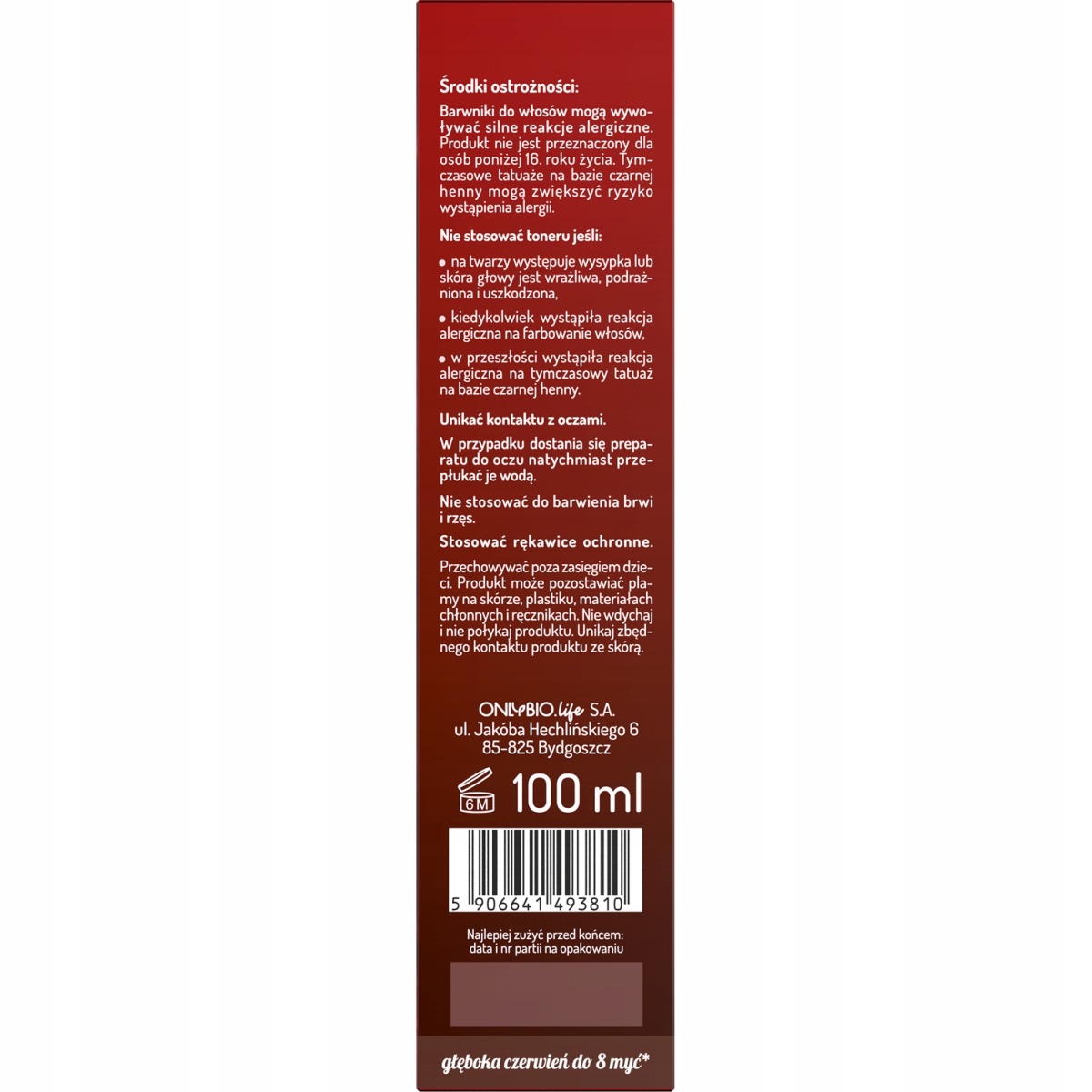 Toner do włosów brązowych OnlyBio Hair in Balance, który odświeża kolor, nadając intensywny, czerwony odcień.