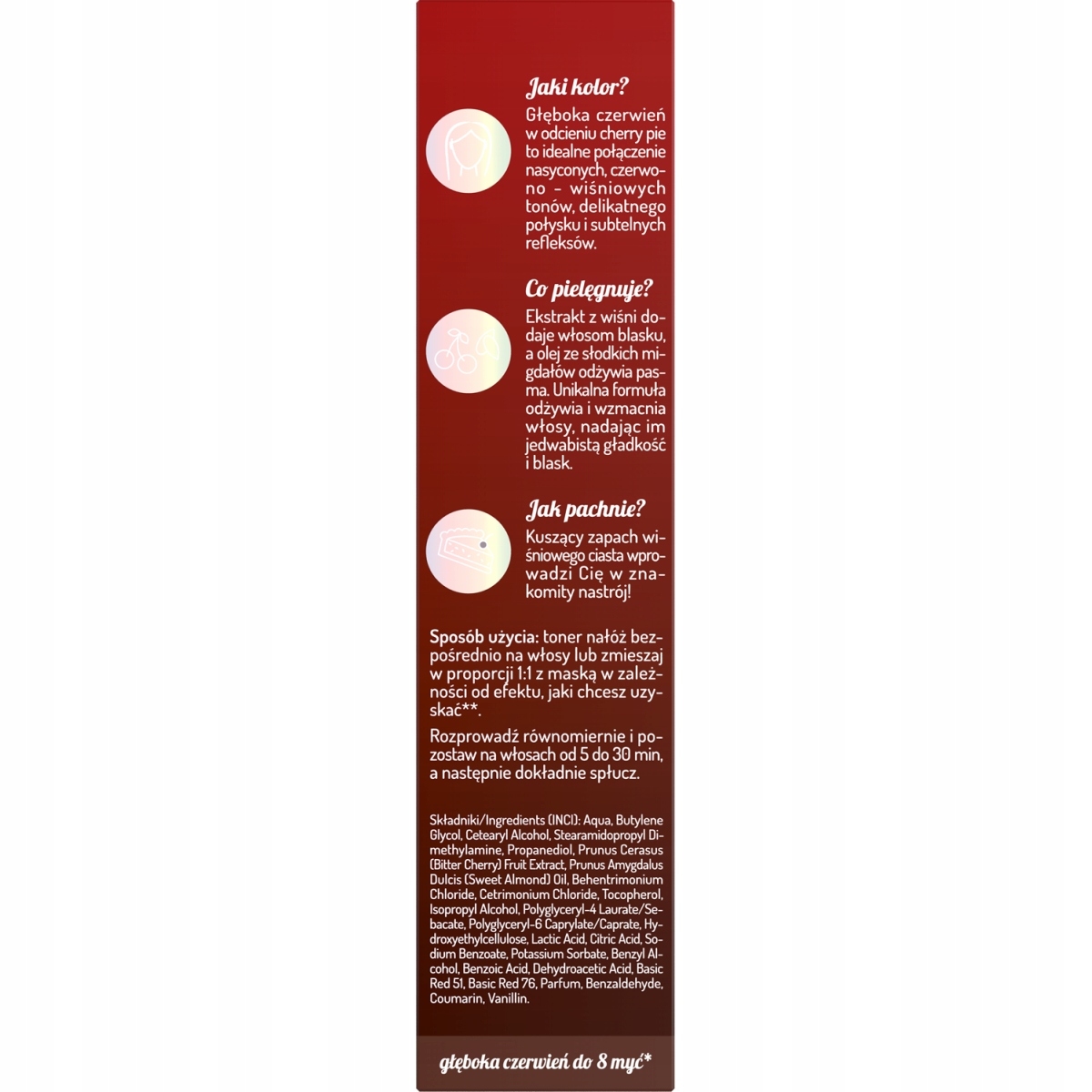 – ekstrakt z wiśni dodaje włosom blasku,