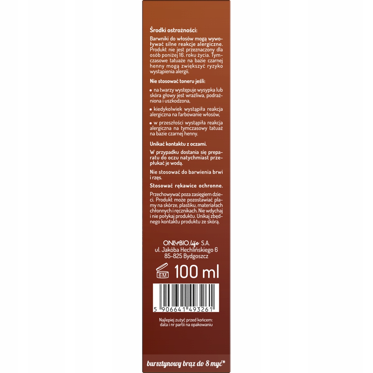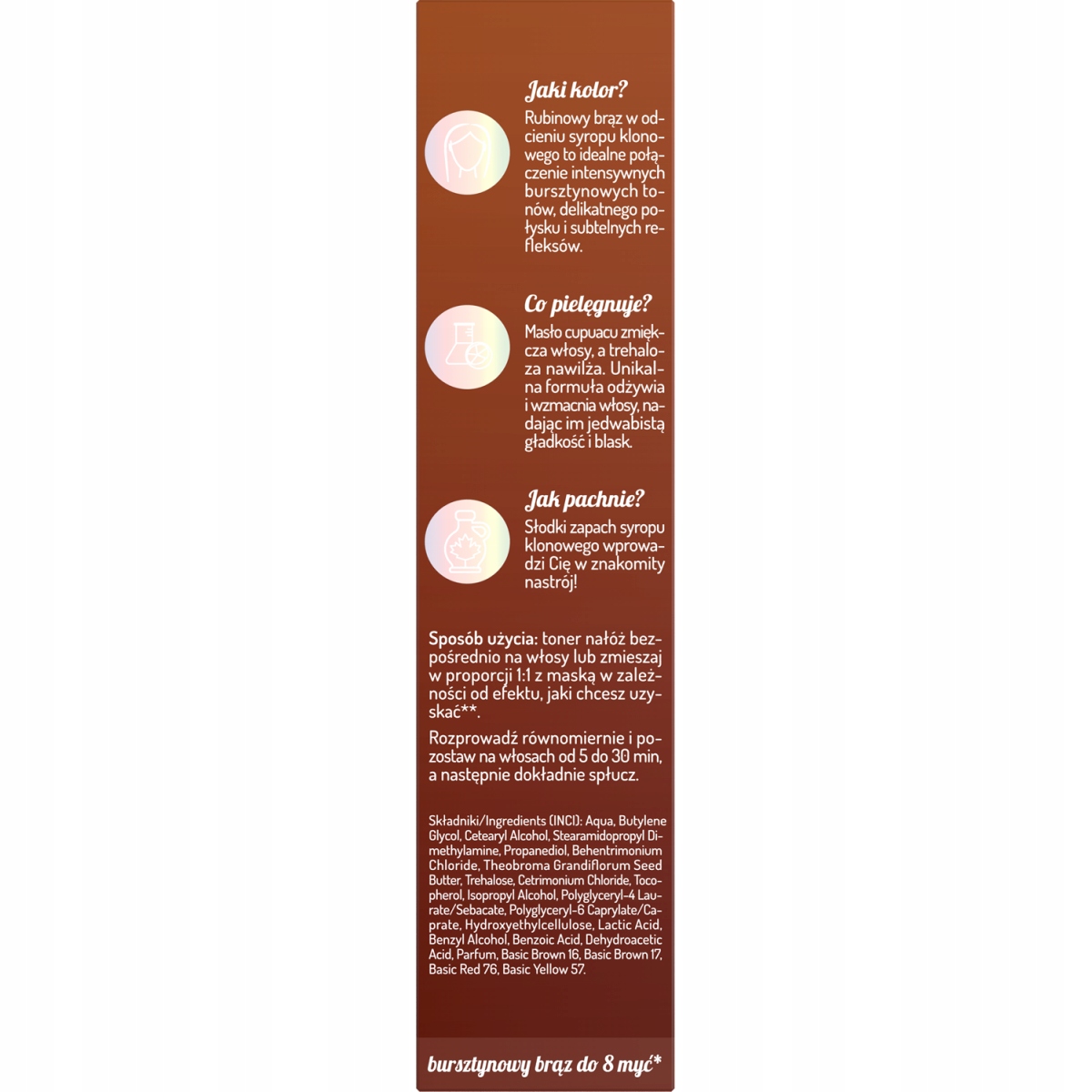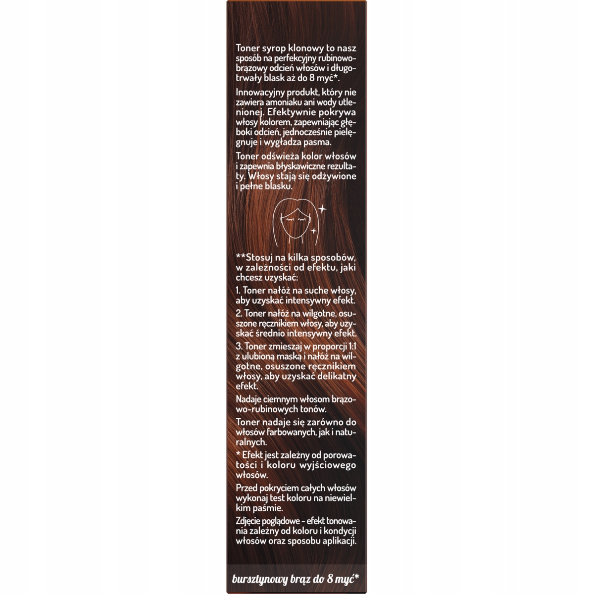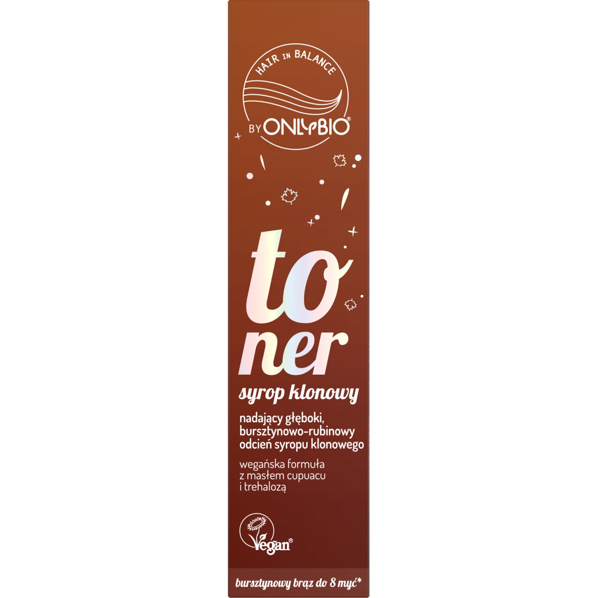 Toner do włosów brązowych OnlyBio Hair in Balance, który odświeża kolor, nadając głęboki, bursztynowo-rubinowy odcień.