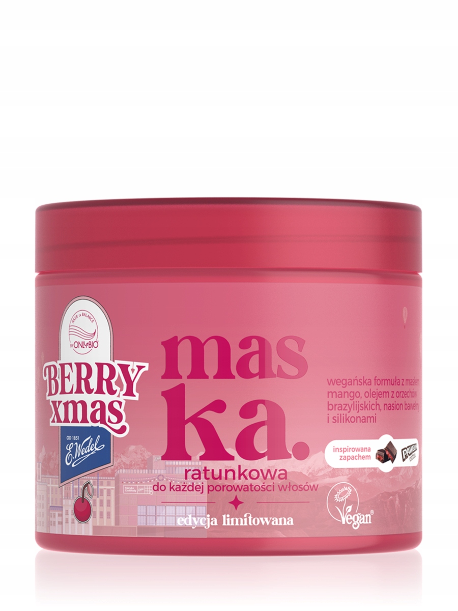 Pachnie intensywnie – jak czekolada, soczyste wiśnie i odrobina szaleństwa. To aromat śmiechu, spontaniczności i chwil, które aż proszą się, by uchwycić je na stories! It’s time… for berry soft hair! OnlyBio i E.Wedel przeniosą Cię do świata soczystych świąt, gdzie zamiast klasyki jest owocowa zabawa, a zapachy kuszą jak świąteczne słodkości. Wskocz w świąteczny mood z Berry xmas i Fabryką Czekolady E.Wedel! Maska ratunkowa z linii Hair in Balance to nasz sposób na ekstremalne wygładzenie, natychmiastowe poprawienie wyglądu włosów i ekspresowy efekt tafli.