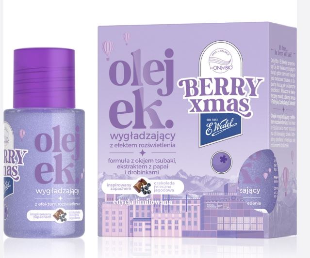 It’s time… for berry soft hair! OnlyBio i E.Wedel przeniosą Cię do świata soczystych świąt, gdzie zamiast klasyki jest owocowa zabawa, a zapachy kuszą jak świąteczne słodkości. Wskocz w świąteczny mood z Berry Xmas i Fabryką Czekolady E.Wedel! Olejek wygładzający z efektem rozświetlenia z linii Hair in Balance to nasz sposób na olśniewający blask i idealną gładkość mieniącą się milionami drobinek!