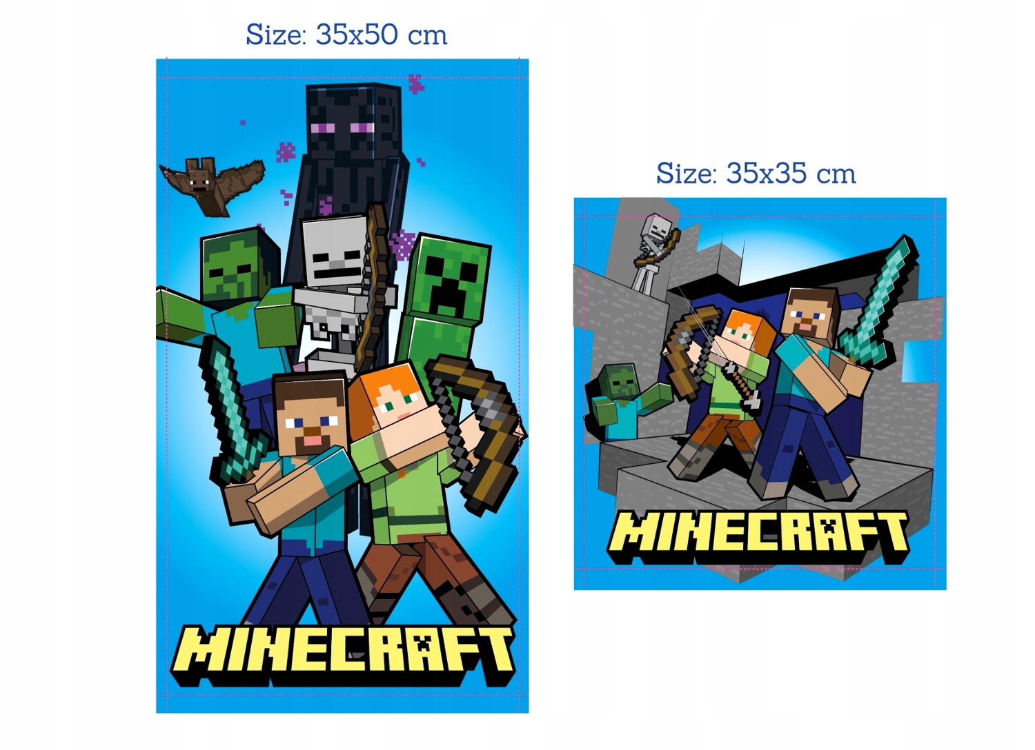 Ręczniki MINECRAFT mają idealny rozmiar 35×50 cm i 35×35 cm, dzięki czemu są praktyczne zarówno do osuszania dłoni, jak i twarzy.