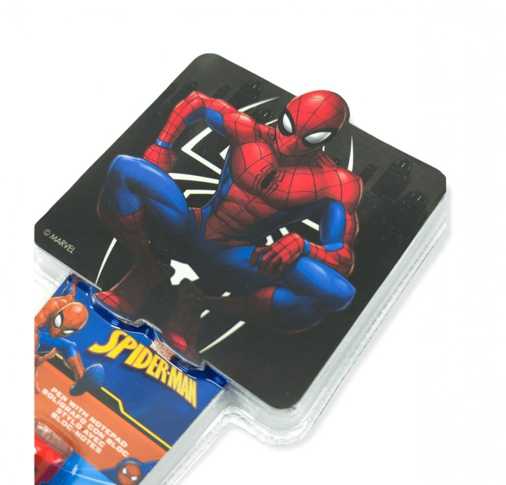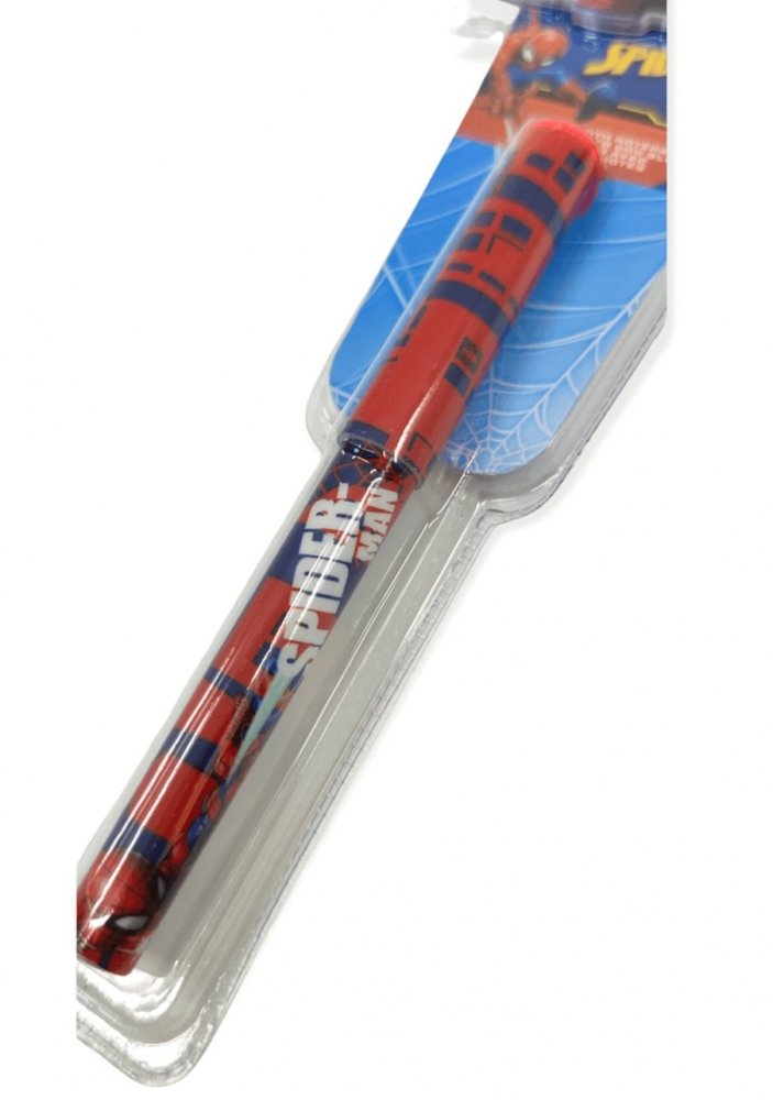 - Super Design: Długopis utrzymany w charakterystycznych barwach Spider-Mana – czerwieni i niebieskiego – z grafikami przedstawiającymi bohatera w akcji i logo.