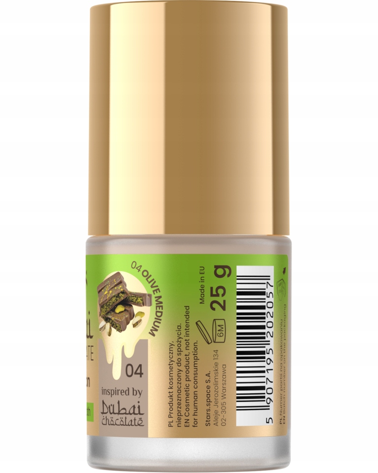 Idealnie wtapia się w skórę, optycznie ją wygładzając. Minimalizuje widoczność porów i nierówności. Długotrwała, zastygająca, plastyczna formuła zapewnia nieskazitelny wygląd na długie godziny. I pachnie jak dubajska czekolada!