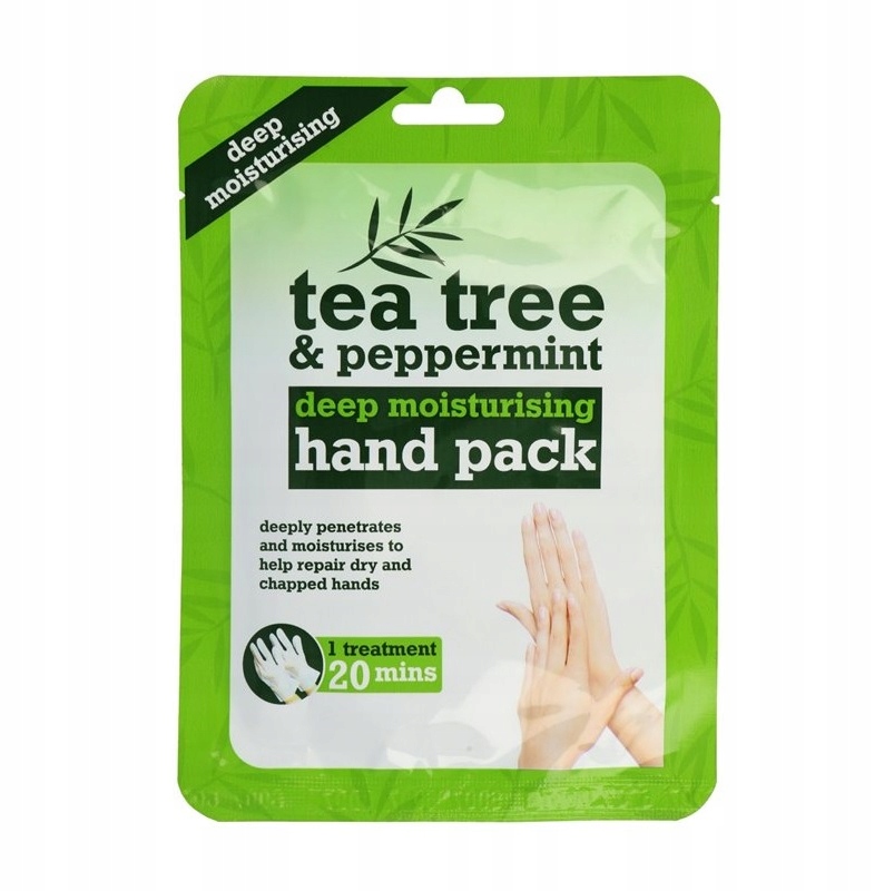 Xpel Tea Tree Tea Tree & Peppermint Deep Moisturising Hand Pack Rękawiczki nawilżające 1szt to produkt przeznaczony do intensywnego nawilżania dłoni. Rękawiczki zawierają ekstrakt z drzewa herbacianego i mięty pieprzowej, które pomagają w regeneracji suchej skóry.