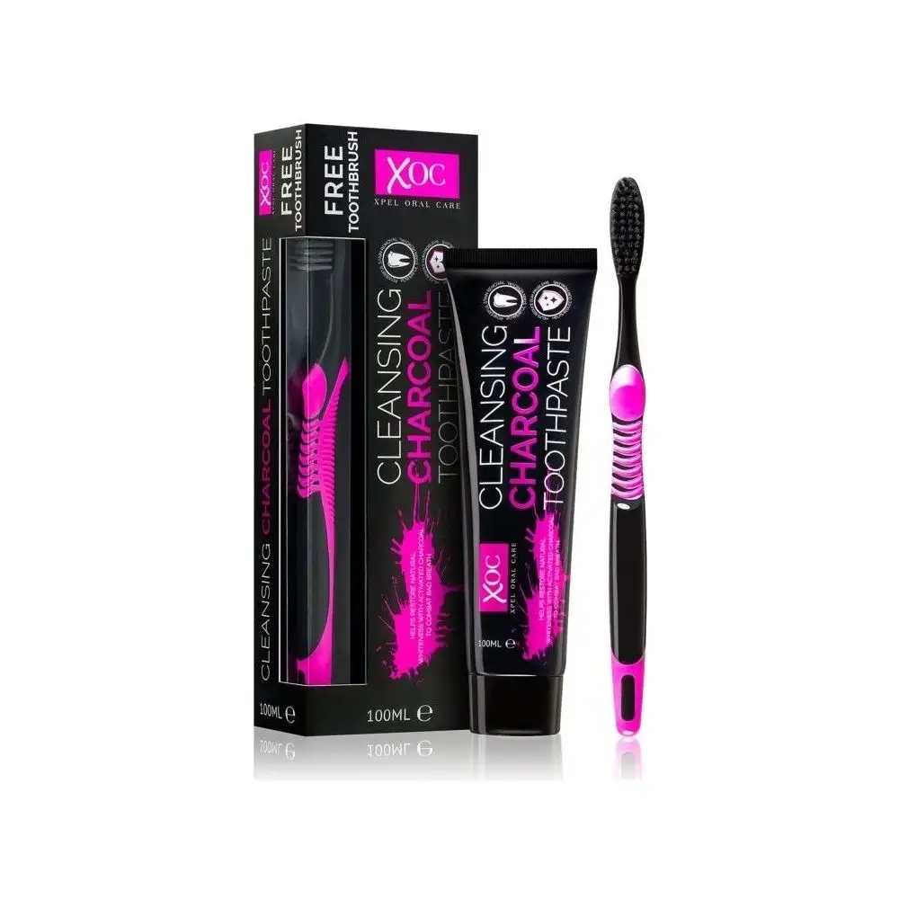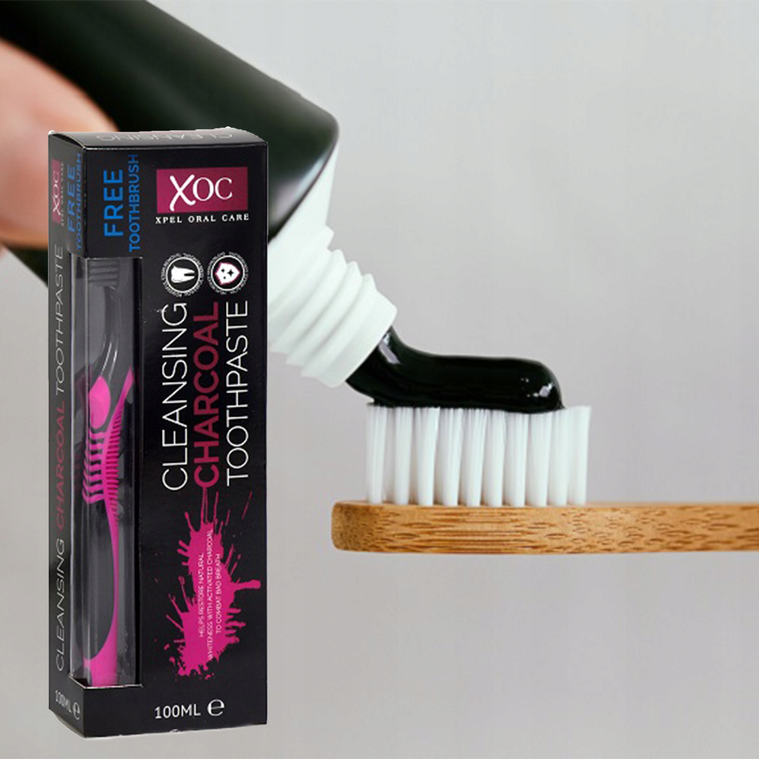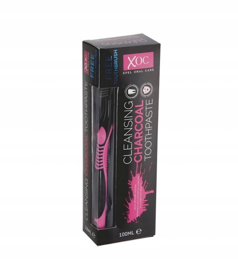 XOC CHARCOAL PASTA CZARNA Z WĘGLEM 100ml + SZCZOTECZKA