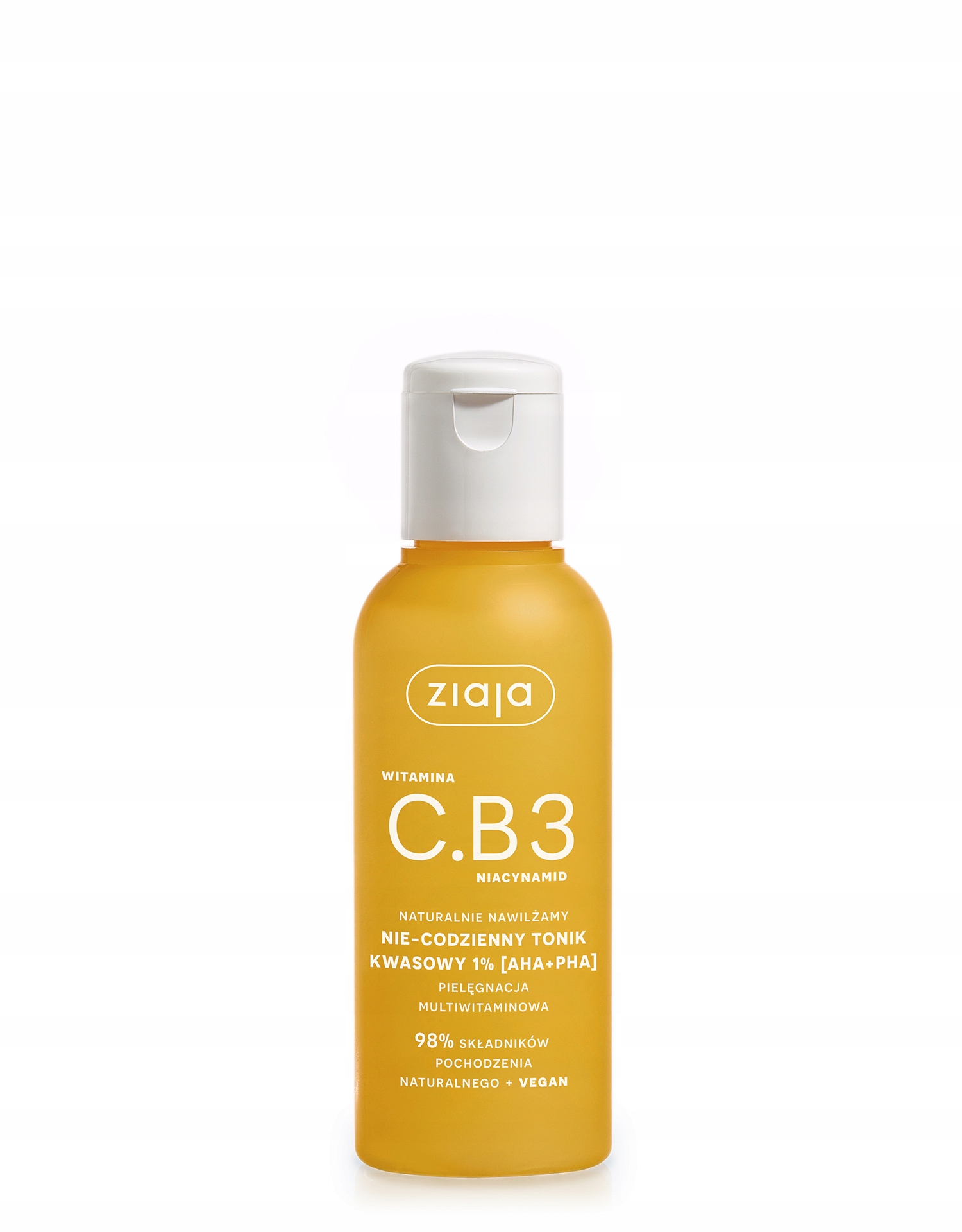 Aktywny HYDRA-EKSFOLIATOR z 1% kwasów [AHA+PHA] oraz esencją aktywnych witamin – głównie C i B3 (niacynamid) oraz B5, B6 i E o energetyzującym działaniu. Nie zawiera alkoholu.